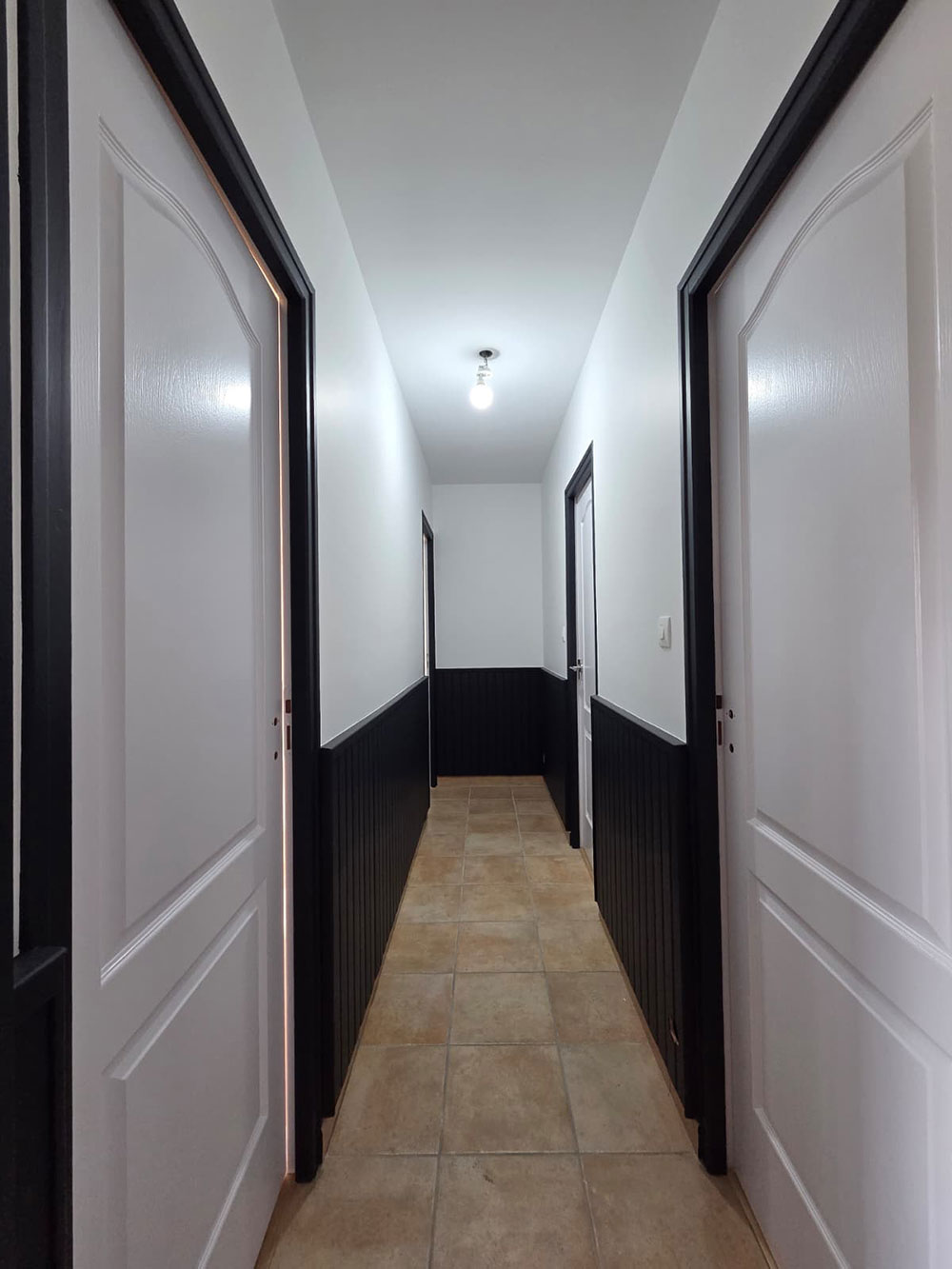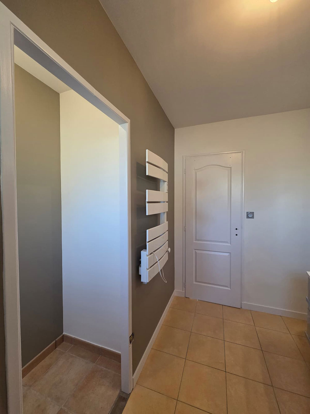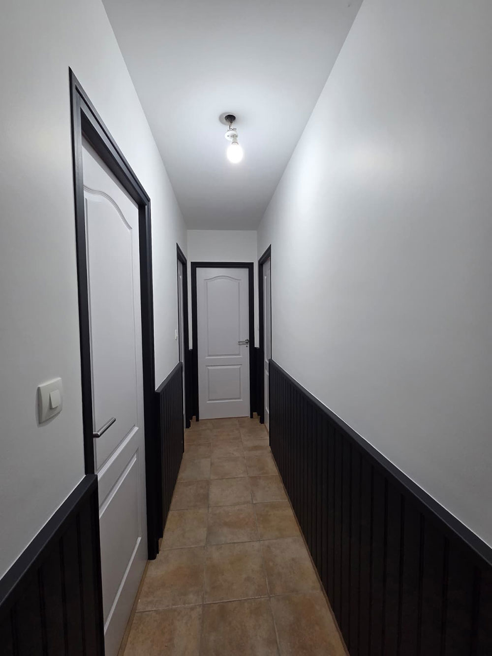 Rénovation complète d’une maison en peinture et sol sur La Régripière avec de la couleur.